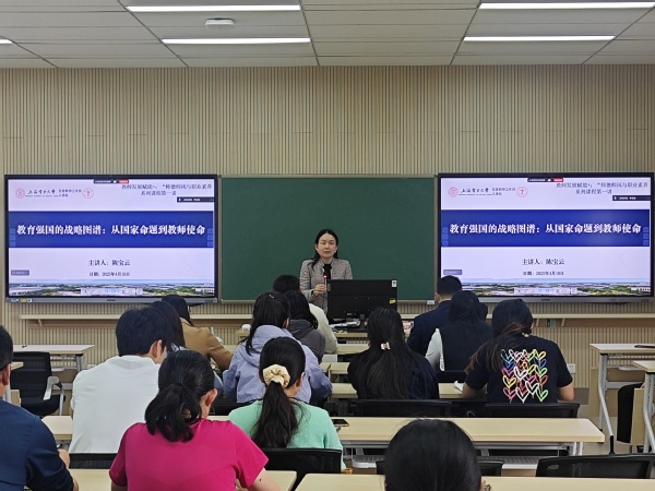 為深入學習貫徹黨的二十大和黨的二十屆二中、三中全會精神,貫徹落實全國教育大會精神、上海市教育大會精神和《教育強國建設規劃綱要(2024-2035年)》相關工作部署,緊扣新時代教育發展需求,校院協同推出教師發展賦能+系列培訓,培訓包含教育家精神及師德師風建設、教師專業素養、能源電力素養、AI賦能四大模塊。4月10日,由黨委教師工作部/人事處主辦,馬克思主義學院承辦的“習近平總書記教育重要論述融入教師發展全過程”系列講座開講。第一講由馬克思主義學院陳寶云副教授作題為“教育強國的戰略圖譜:從國家命題到教師使命”專題講座。講座由馬克思主義學院黨總支書記常華主持,教工部/人事處、宣傳部、保衛處相關領導出席,60余名教師于線上線下同步聆聽。