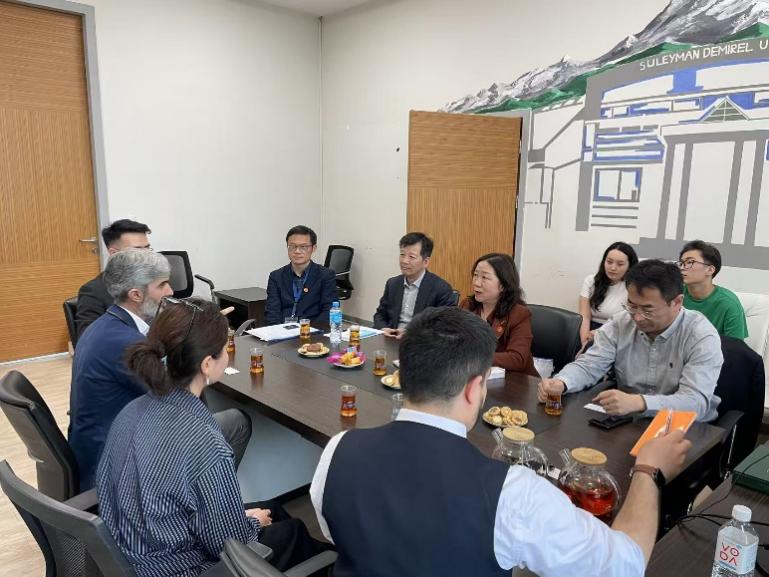 張波一行與SDU大學校領導及管理層進行會談,SDU校長Alimzhan igenbayew、科研副校長Maksat Kalybak、工程與自然科學學院院長Ramis Akhmedow、商學院院長Berik Sabdenaliyev等參會。雙方相互介紹學校發展情況,就聯合科學研究、國際聯合實驗室、師生交流、聚焦AI應用的科研合作等方面開展深入交流,并就“一帶一路”聯合實驗室戰略合作、學術交流等達成初步合作意向。張波強調,上海電力大學始終將國際化視為學校高質量發展的重要驅動力之一,與SDU大學的合作,不僅是兩校優勢的互補,更是貫徹國家“一帶一路”倡議的具體實踐。Alimzhan igenbayew指出,兩校以多元學科為錨點、以師生交流為紐帶,可以為“絲綢之路”賦予更豐富的教育內涵。SDU大學期待與我校合作開啟中亞與中國高等教育合作的新范式。