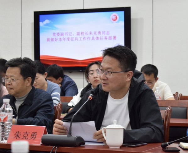校黨委副書記、副校長朱克勇就本年度征兵工作作具體部署。他指出,征兵工作人員要進一步提高認識,嚴格落實,把握好報名初篩、政治考核、審批定兵等關(guān)鍵環(huán)節(jié);進一步摸清底數(shù)、分類施策、精準對接,做好應征青年涉及到的各項保障工作;校內(nèi)部門聯(lián)動,用好各類紅色資源,弘揚典型,構(gòu)建全方位、多層次的宣傳教育體系,讓參軍報國成為青年學生的價值追求。