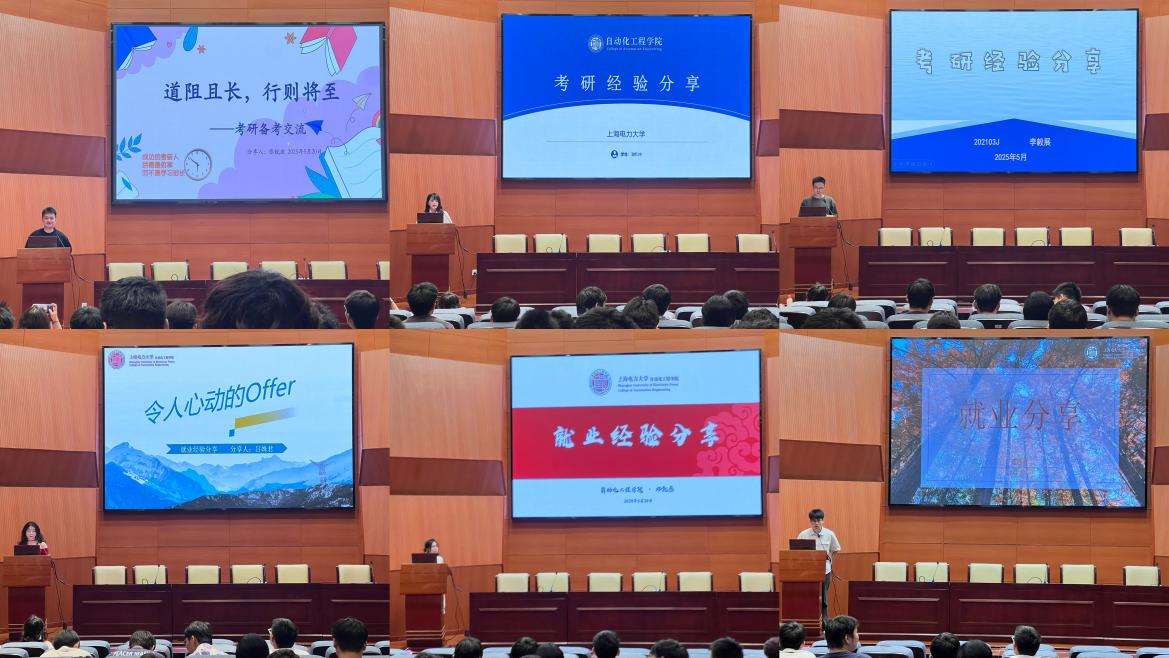 5月20日,自動化、核控專業專場經驗交流會在行政中心一樓報告廳舉行。張銳波、謝和岑、李毅展三位成功考研上岸學長從院校專業選擇心路歷程,到備考期間學習規劃及經驗,再到復試環節的實戰技巧,毫無保留地分享自己的“上岸秘籍”。他們重點強調要制定科學合理的學習計劃,并建議同學們根據自身情況靈活調整復習節奏,鼓勵大家在逐夢路上堅定信心,合理調節壓力。呂姝君、鄧凱燕、唐鈺城三位已成功簽約就業的學長圍繞招聘信息收集、求職規劃、簡歷制作要點及面試技巧等方面分享了個人“通關經驗”。他們強調實習實踐的重要性,深入講述如何在求職過程中突出自己的專業優勢,并強調團隊協作、溝通能力等綜合素質在職場中的重要性。交流會現場氣氛熱烈。
