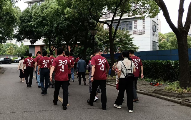 上午10時(shí),校友們陸續(xù)抵達(dá)學(xué)校,身著統(tǒng)一紀(jì)念文化衫,在長(zhǎng)陽路2588號(hào)楊浦校區(qū)門口前合影留念。隨后,在志愿者的引導(dǎo)下,校友們參觀了英華樓、圖書館、行政樓、教學(xué)樓、宿舍樓及奮進(jìn)樓實(shí)驗(yàn)室。面對(duì)煥然一新的校園設(shè)施與科研成果展示,校友們感慨萬千,紛紛贊嘆母校在學(xué)科建設(shè)與技術(shù)創(chuàng)新上的飛速發(fā)展。漫步于曾經(jīng)學(xué)習(xí)生活的地方,回憶當(dāng)年的點(diǎn)滴時(shí)光,校園的一草一木勾起了校友們對(duì)青春歲月的無限懷念。