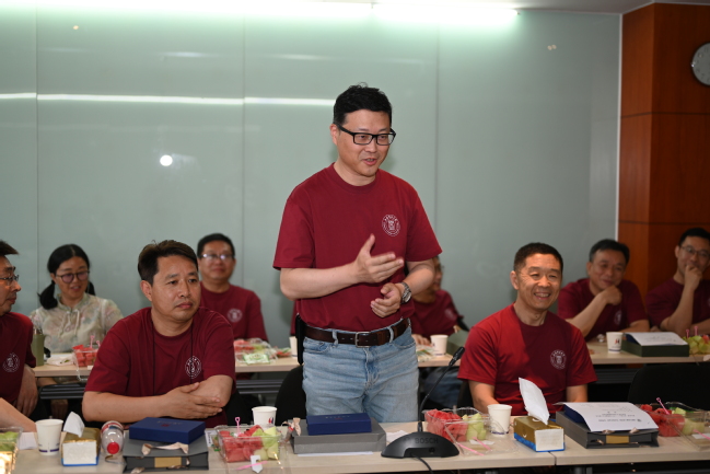 活動(dòng)現(xiàn)場(chǎng),校友們逐一分享個(gè)人近況與行業(yè)成就,從新能源研發(fā)到海外技術(shù)合作,未到場(chǎng)的校友通過騰訊會(huì)議“云端”暢敘,大家也共同表達(dá)了對(duì)母校和恩師的感激之情。馬慶、陳金娥和章德龍三位恩師深情寄語,對(duì)校友們的成長(zhǎng)和發(fā)展表示欣慰,對(duì)大家未來的發(fā)展予以期待,勉勵(lì)校友們?cè)诟髯缘念I(lǐng)域繼續(xù)發(fā)光發(fā)熱。同時(shí),老師們也殷殷囑咐校友們?cè)谑聵I(yè)發(fā)展的同時(shí)兼顧身心健康、家庭幸福,期待校友們經(jīng)常回母校看看。現(xiàn)場(chǎng)特別準(zhǔn)備的校徽主題蛋糕將溫情推向高潮,潘衛(wèi)國(guó)以“熱力精神永續(xù)”寄語校友與母校同心同行,期待攜手書寫綠色能源新篇章。