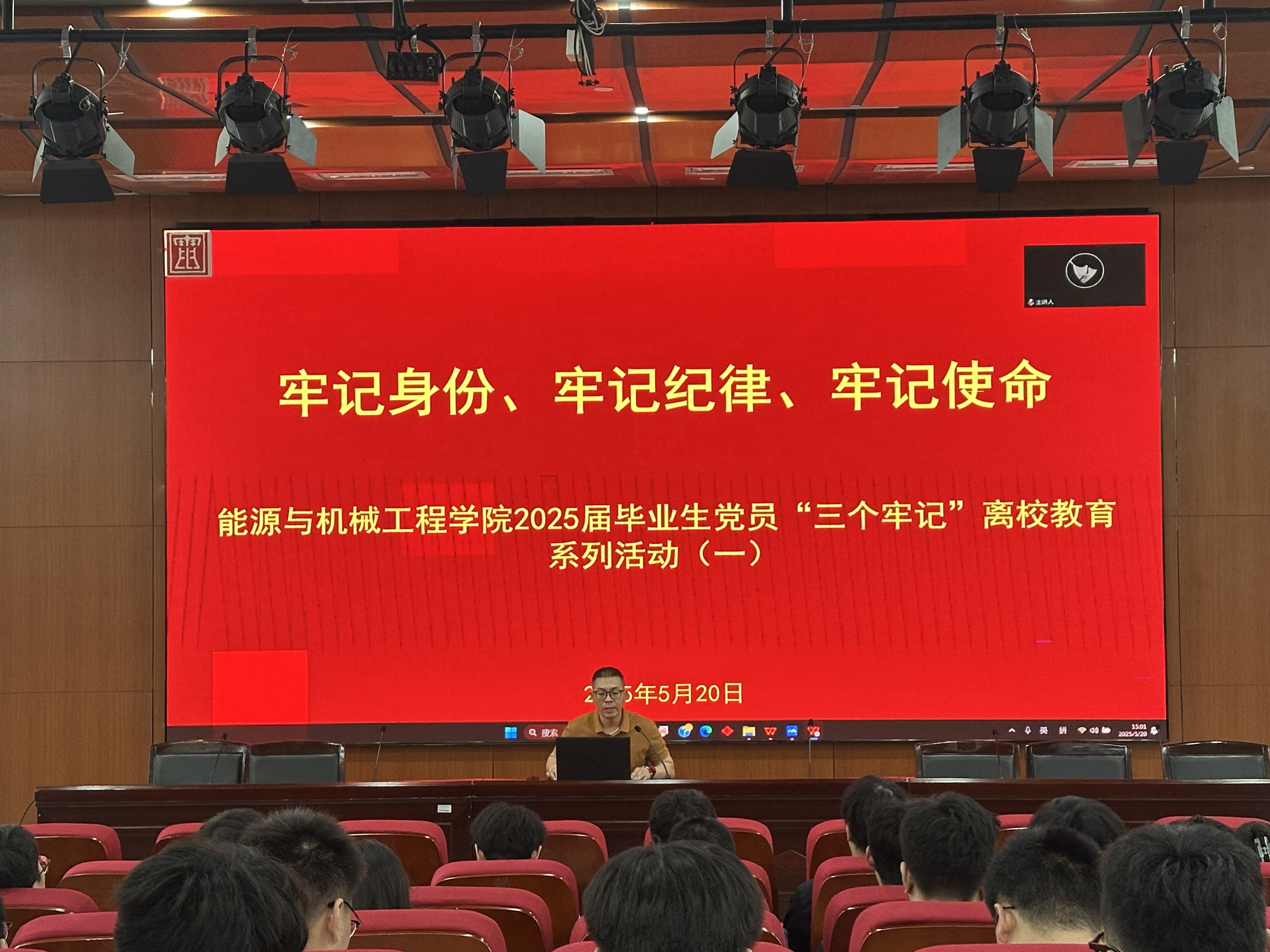 能源與機(jī)械工程學(xué)院于5月20日在學(xué)術(shù)樓103會(huì)議室召開2025屆畢業(yè)生黨員“三個(gè)牢記”離校教育系列活動(dòng),學(xué)院全體畢業(yè)生黨員參加會(huì)議。