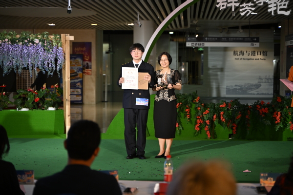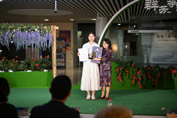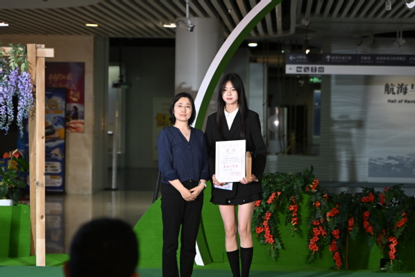 值得一提的是,本次大賽評審采用了 “專業評委 + 行業導師 + 大眾評審” 的多元評價體系,確保評選專業性與公信力。經過激烈角逐,選手鄭舒文因在聯合主持環節中的精彩表現摘得“金話筒獎”,涂念琦憑借沉浸式講解中的細膩表現力贏得“銀話筒獎”,張芯凱則以充滿科技感的才藝展示獲得“銅話筒獎”。此外,大賽還頒發了“最佳人氣獎”“優秀主持人獎” 等多個獎項,電氣學院、外國語學院、數理學院獲優秀組織獎。現場還為學生頒發了“航海文化宣傳志愿者”證書。