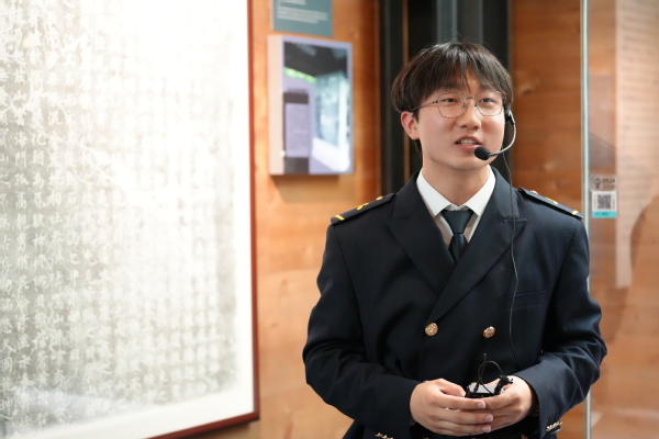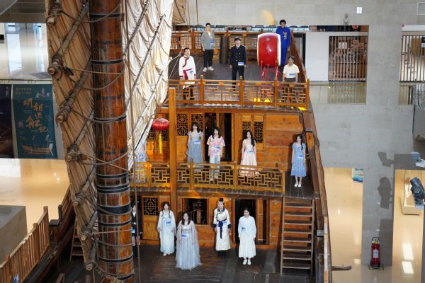 “各位觀眾,此刻我正站在鄭和寶船的巨型模型前,六百多年前,正是這樣的‘海上巨無霸’開啟了鄭和七下西洋的壯舉……”5月20日晚,在上海中國航海博物館內,一位手持話筒的青年學子,化身特派記者,在“明朝造船記特展”區域侃侃而談,生動的講解配合著展館內栩栩如生的航海模型,將觀眾瞬間帶回到那個波瀾壯闊的大航海時代。