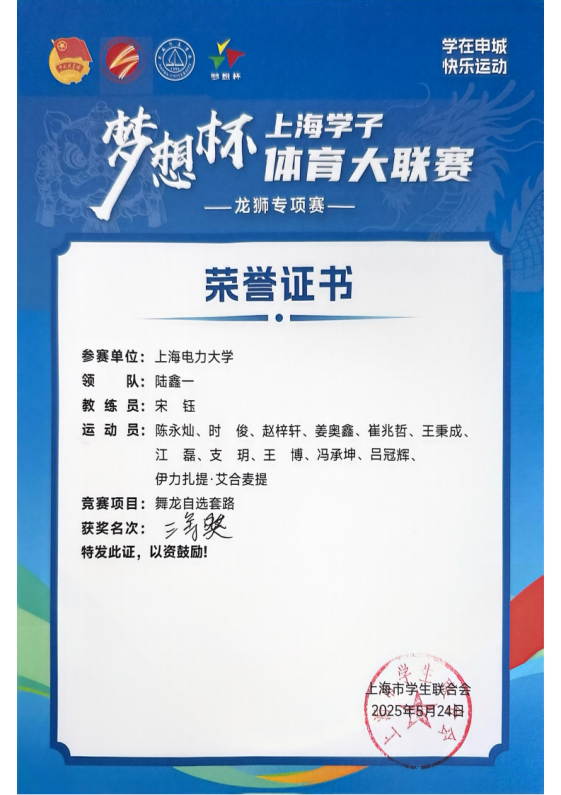 5月24日,由共青團上海市委員會、上海市教育委員會、上海市體育局指導,上海市學生聯合會主辦,上海杉達學院承辦的“夢想杯”上海學子體育大聯賽龍獅專項賽暨首屆上海市高校龍獅精英賽在上海杉達學院金海路校區舉行。來自滬上高校的23支龍獅代表隊參加。我校計算機科學與技術學院學生組成的舞龍隊代表我校參賽。