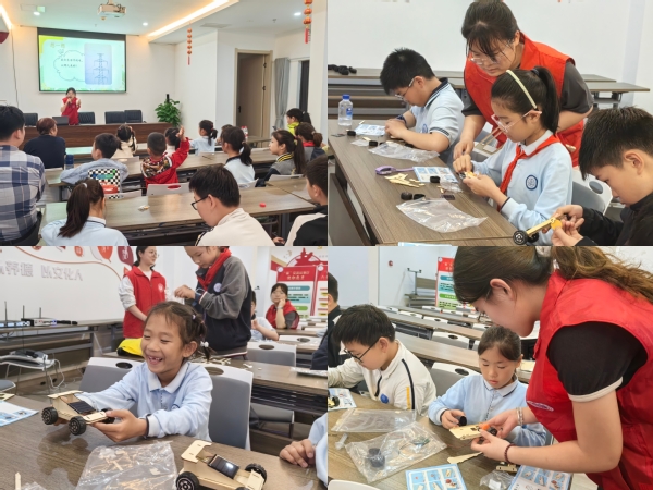 課堂上,志愿者以電力的奧秘為主題,引導青少年思考生活中電的來源,以太陽能的產生為切入點,對傳統能源、清潔能源的分類進行了深入淺出的講解。實驗過程中,在詳盡了解了太陽能在實際生活中的運用后,小朋友們紛紛化身為“小小電力工程師”,在志愿者的指導下逐步動手完成了對太陽能小車的搭建。光伏板接線到電機調試,孩子們認真觀察光驅小車的每一個運動環節,不時發出“原來太陽光真的能變成動力!”的驚嘆。