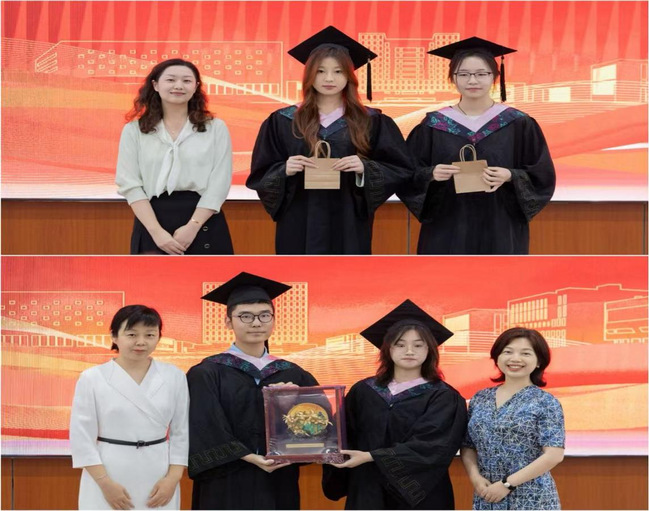 余嘉向畢業生代表贈送畢業禮物,祝福同學們“語通四海·詮釋世界·成就未來”。畢業生代表向學院敬獻禮物,感謝對母校的培育之恩。
