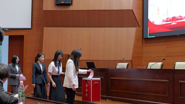 全體與會(huì)代表以無(wú)記名投票的方式分別選舉產(chǎn)生院新一屆學(xué)生會(huì)主席團(tuán)成員、院新一屆研究生會(huì)主席團(tuán)成員和學(xué)生常任代表。全彭瑩、陳俊潔、鄒婧杰當(dāng)選院新一屆學(xué)生會(huì)主席團(tuán)成員。馬雯、張豪、唐開元當(dāng)選院新一屆研究生會(huì)主席團(tuán)成員。王婧、王馨詒等12名學(xué)生代表當(dāng)選院新一屆學(xué)生常任代表。