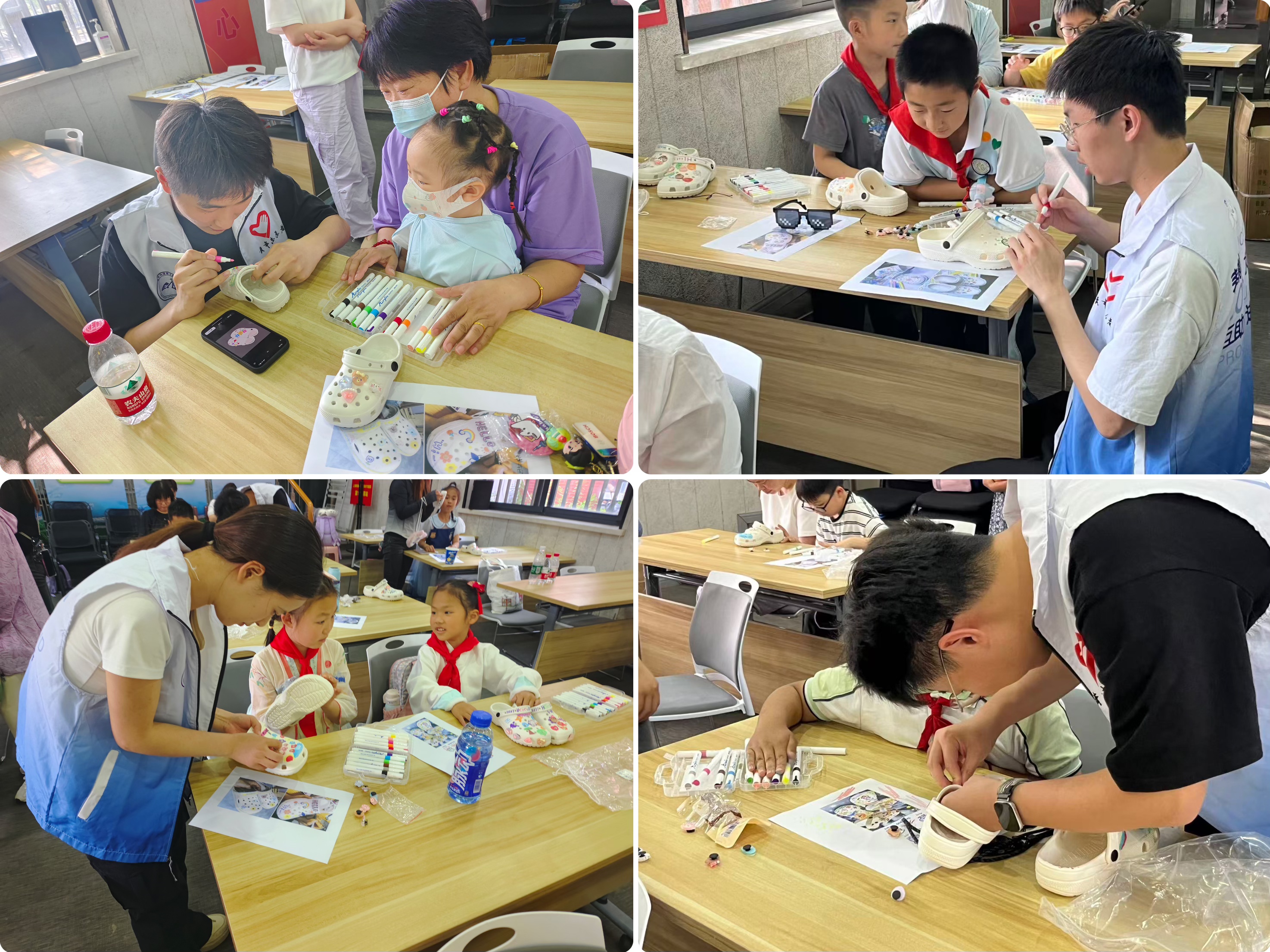 青年黨員與海匯居民區(qū)的小朋友們共同開展了“彩繪洞洞鞋”互動(dòng)體驗(yàn)。孩子們在青年黨員的引導(dǎo)下用畫筆描繪夢想、填涂希望,一雙雙普通的白鞋在色彩與童真的交融中煥發(fā)出獨(dú)特光彩。這不僅是一場富有創(chuàng)意的手工活動(dòng),更是一堂潤物無聲的成長課程,青年黨員在陪伴中傳遞“腳踏實(shí)地、勇敢逐夢”的價(jià)值理念,引導(dǎo)孩子們從“足”下出發(fā)、走好人生的每一步,讓一雙雙彩繪鞋成為他們多彩童年的見證與起點(diǎn)。
