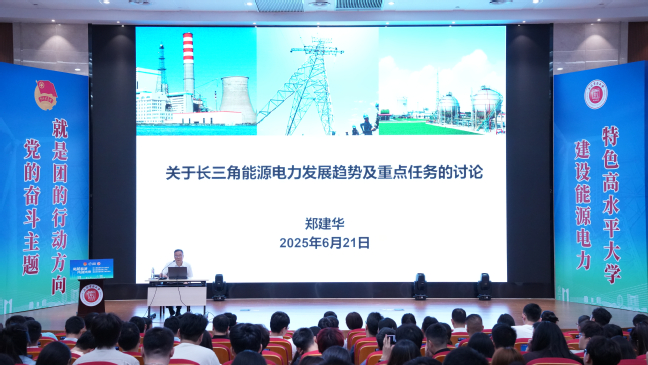 大會在雄壯的《中華人民共和國國歌》聲中拉開帷幕。顧春華致歡迎辭,他代表學校對相關領導一行和長三角能源電力行業企業青年代表、高校學子代表的到來表示熱烈歡迎,并介紹了在屬地和行業企業大力支持下,我校在能源電力特色高水平人才培育上的探索與實踐,從共筑“人才培養實驗室”、共建“技術聯合攻關站”、共拓“資源共享新通道”、共創“產教融合新生態”等四個方面就政、校、企青年深化合作提出了進一步深化合作的暢想。