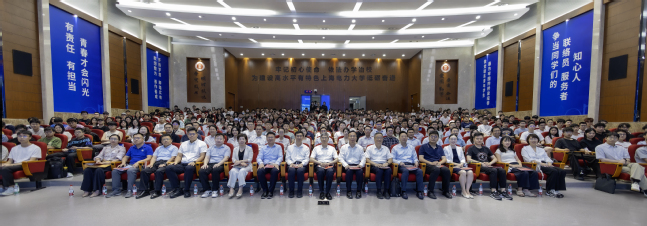 為服務臨港新片區和長三角一體化發展國家重大戰略,創新搭建“區域+行業+青年”深度聯結的平臺,推動能源電力行業校企協同創新,助力我校應用型人才培養,6月21日,以“聚能臨港 共創未來”為主題的長三角能源電力行業校企青年發展聯盟成立大會暨臨港“創客新政12條”宣講會在我校舉行。臨港新片區管委會常務副主任楊正偉,我校黨委副書記、校長顧春華,團上海市委掛職副書記唐志宇,原華東電力設計院副總經理、上海長三角能源研究院首席專家鄭建華,我校黨委副書記、副校長朱克勇,臨港新片區黨群工作部部長蔣靜,國網上海公司黨建部主任廖懷慶等領導出席,國家電網有限公司華東分部等15家長三角能源電力行業領軍企業青年代表,臨港集團團委、港城集團團委等6家屬地支持單位青年代表,浙江大學、江蘇大學、安徽大學等十余所長三角兄弟高校優秀學子代表以及我校師生代表等共300余人參會。大會由我校團委副書記周長長主持。