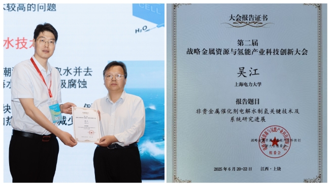 6月20-22日,“第二屆戰略金屬資源與氫能產業科技創新大會”在江西上饒召開。本次會議以綠色、清潔、低碳為主題,圍繞戰略金屬、冶金、材料、化工、綜合利用、碳減排、氫能、碳中和等開展廣泛的學術交流和研討,核心理念在于推動戰略金屬在氫能、碳減排、燃料電池等交叉融合,加快形成新的生產力,促進低碳能源體系構建與社會可持續發展。我校教師吳江教授應邀在大會上作“非貴金屬催化劑電解水制氫關鍵技術及系統研究進展”的主題報告。
