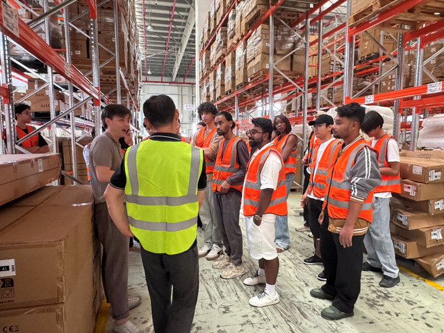 活動當天上午,同學們懷揣著期待與好奇,有序走進企業在洋山港保稅區的海外倉。企業相關負責人對師生們的到來表示熱烈歡迎,并精心安排了豐富的參觀流程。同學們在企業領導的陪同下,通過專業負責人的詳細介紹,全面了解了跨境電商企業物流的新模式、新業態。