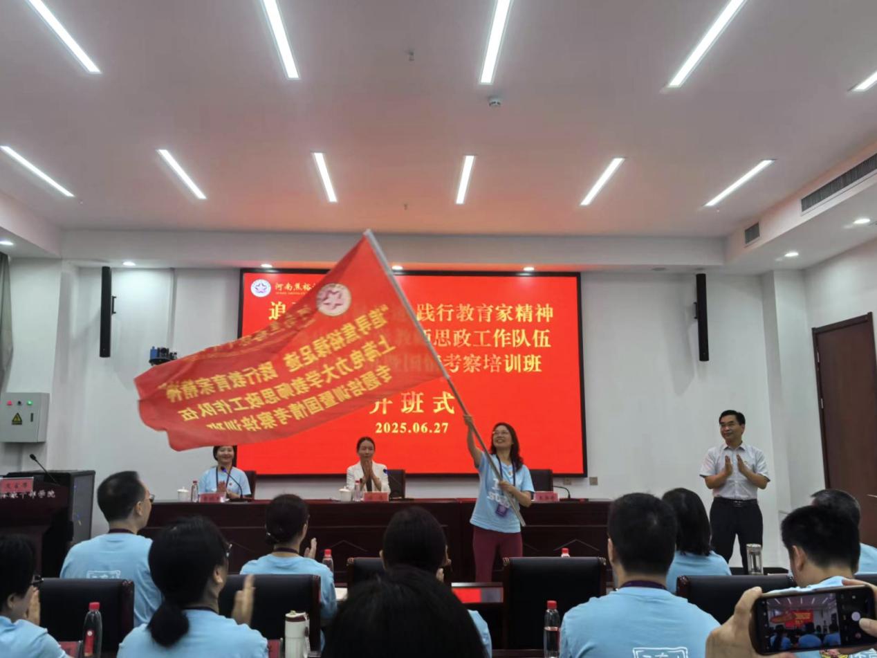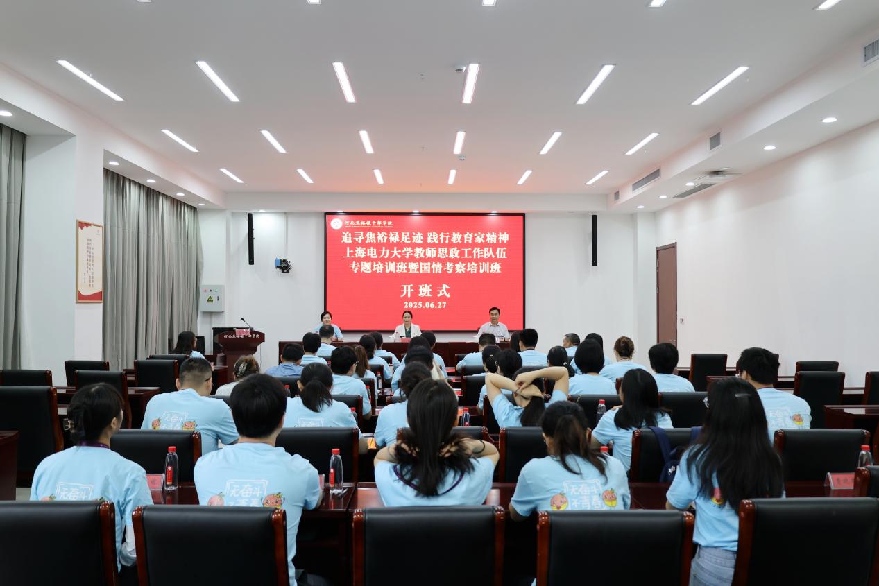 為深入學習貫徹習近平總書記關于建設教育強國重要講話精神、關于高校黨建和思想政治工作重要指示精神,持續推進作風建設常態化長效化,認真落實黨中央關于加強高校教師隊伍建設的決策部署,6月27日上午,我?!白穼そ乖5撟阚E,踐行教育家精神”教師思政工作隊伍專題培訓暨第四期教師國情考察培訓班開班儀式在河南焦裕祿干部學院舉行。河南焦裕祿干部學院黨委委員、副院長王書奇,我校黨委教師工作部副部長、人事處副處長諸俊,我校36名學員及河南焦裕祿干部學院部分教師參加。儀式由培訓班第二組組長,我校人文藝術學院專職組織員曹曉聲老師主持。