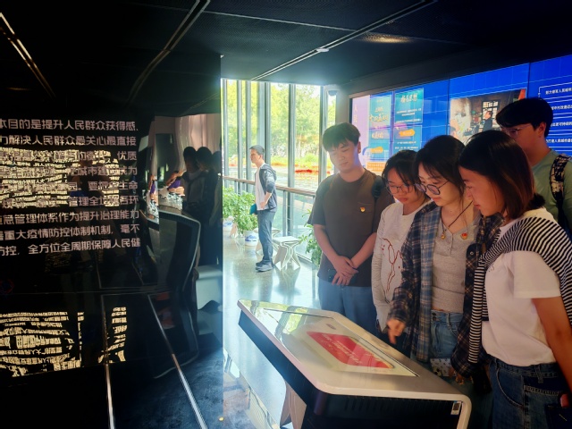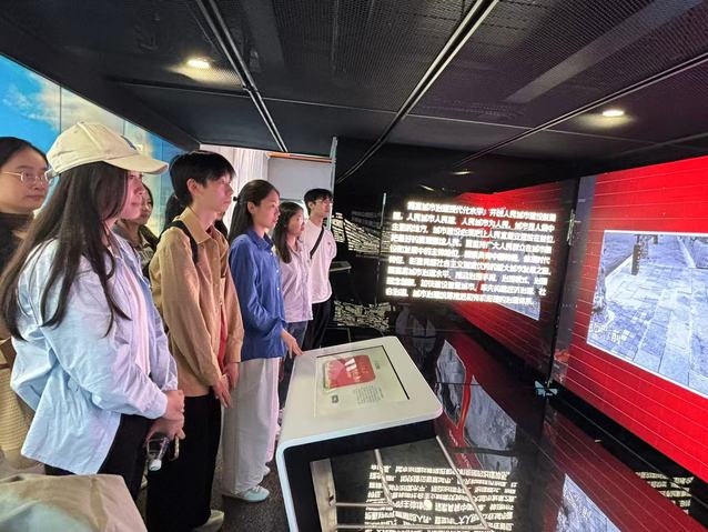 活動首站抵達人民城市建設規劃展示館。在由百年祥泰木行舊址改造的規劃展示館內,支部成員通過數字化展陳系統學習人民城市理念的誕生與深化。館內復原的“十個平方九個頭”舊居微縮模型,生動呈現楊浦三十年舊改歷程。從逼仄里弄到濱江宜居社區,影像時間軸記錄165萬戶居民的獲得感躍遷。師生通過電子互動屏瀏覽市民提交的5000余條濱江空間優化建議,并現場掃碼參與“濱江驛站功能優化”提案,體驗“人民建議直通車”民主實踐。