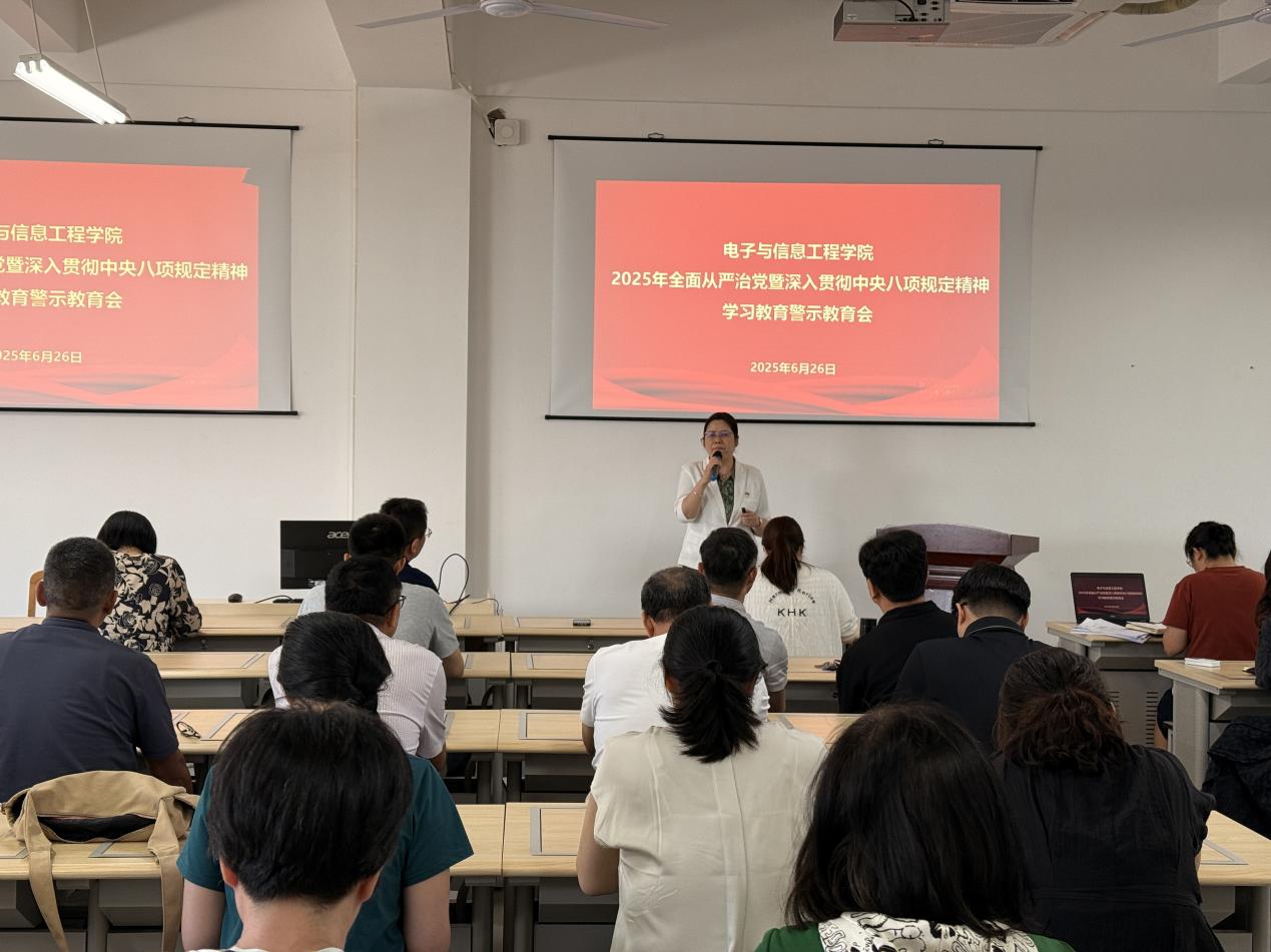 6月26日下午,電信學(xué)院召開2025年全面從嚴(yán)治黨暨深入貫徹中央八項(xiàng)規(guī)定精神學(xué)習(xí)教育警示教育會。學(xué)院全體教職工參加會議。