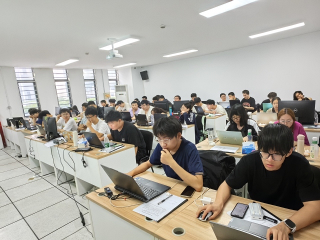 為積極響應國家教育強國戰略和上海市應用型人才培養改革試點要求,6月23日至6月27日,計算機科學與技術學院開設首期《智能機器人工作站與數字孿生技術綜合實踐》暑期企業微課程。此次課程依托臨港集團創新學院,學生走進上海臨港智能制造實訓基地開展為期一周的綜合項目制實訓。課程邀請了4位企業技術專家進行全程授課,44名計算機學院各專業大三學生及新能源汽車微專業學生參加本次全企業實踐課程的學習。課程內容以工業智能制造中智能機器人典型的分揀、裝配與檢測為應用場景,覆蓋機器視覺、機器人與數字孿生三大前沿領域,為學生提供了虛實結合、物理設備與虛擬模型聯動的智能機器人工作站與數字孿生系統的產業級實訓環境。