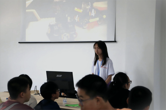 開營當(dāng)日,教員田茂瑜、林詩靜等為學(xué)員詳細(xì)講解了RoboMaster機(jī)器人的發(fā)展概況、基礎(chǔ)原理及智能小車的基本構(gòu)造,并通過觀摩近期高水平賽事視頻,激發(fā)了學(xué)員濃厚的科技興趣。