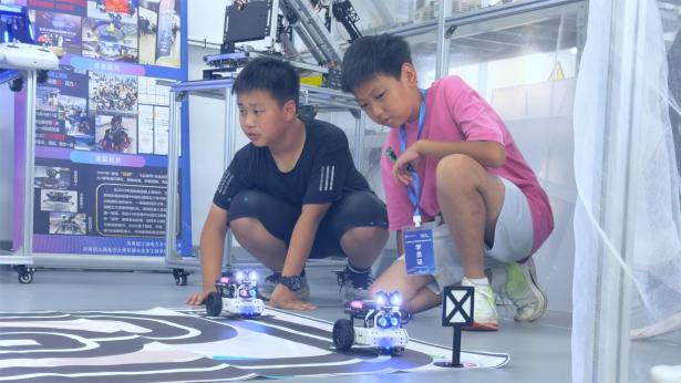 測評環(huán)節(jié),學(xué)員們通力協(xié)作,順利完成智能小車巡線自動(dòng)駕駛,并進(jìn)行了緊張激烈的3v3機(jī)器人對抗賽。對抗賽場上,紅藍(lán)雙方操控機(jī)器人展開精彩對決,激烈的攻防場面贏得了現(xiàn)場觀眾的陣陣驚嘆與掌聲。