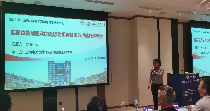 我校能源與機械工程學院潘衛國教授、張濤副教授受邀參加本次會議。在工質熱物性分會場,吳韶飛副教授作了題為“低品位熱能驅動的氨吸附機理及多效供儲循環特性”的分組報告,報告主要圍繞基于鹵化物-氨和金屬有機框架-氨工質對的熱力學循環在低溫環境儲氨及供熱、高溫環境儲氨及制冷的高適應性等方面進行匯報交流,研究成果獲得與會專家學者的高度評價。