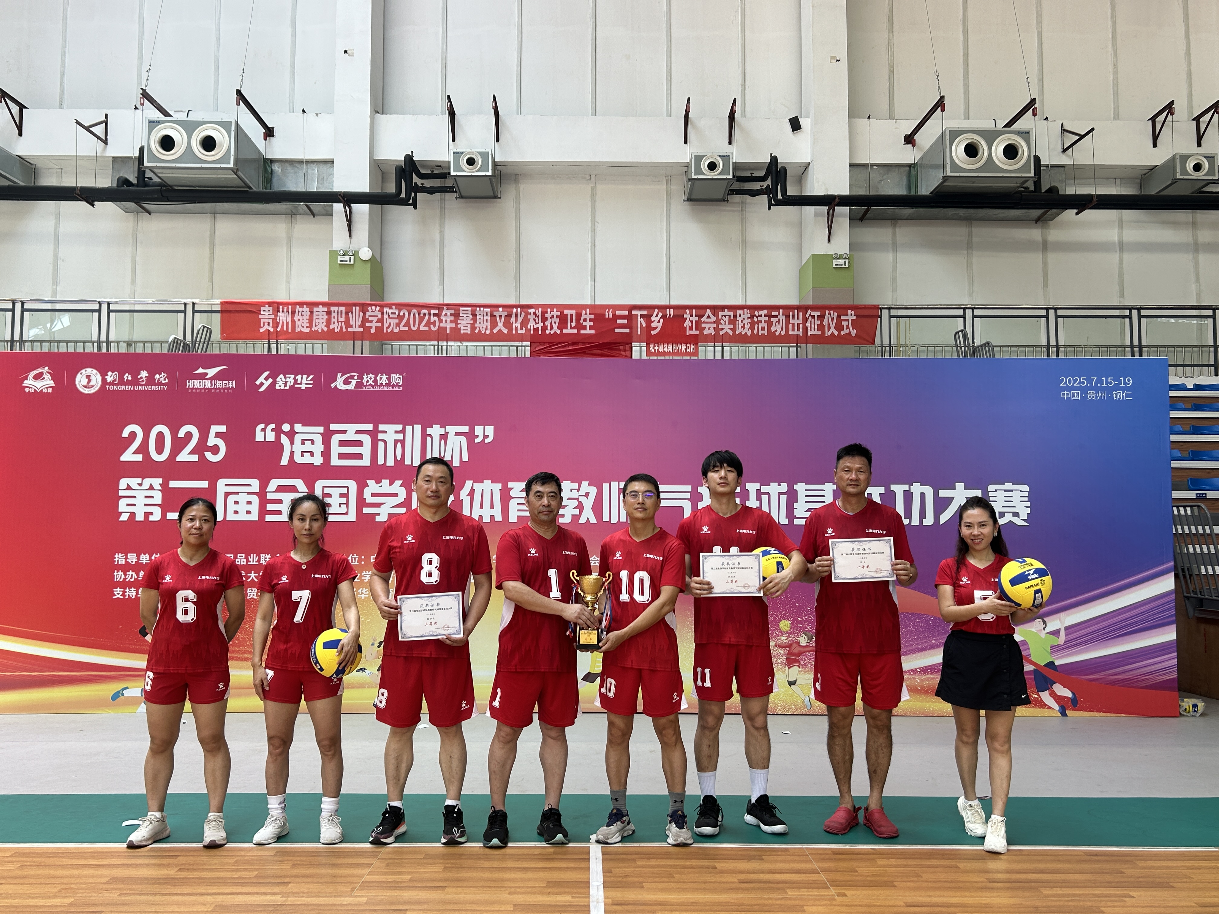 7月16日至17日,由中國體育用品業聯合會學校體育工作委員會主辦的2025“海百利杯”第二屆全國學校體育教師氣排球基本功大賽在貴州銅仁舉行。我校體育教師代表隊憑借出色的團隊協作與扎實的基本功,一路過關斬將,最終斬獲團體賽冠軍,展現了卓越的競技水平和教學素養。
