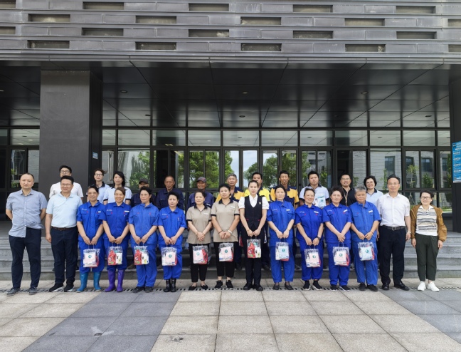 校領導一行先后前往招生錄取現場、三期建設工地、校園門崗、學生宿舍以及食堂等區域,詳細了解暑期工作進展和員工生活保障情況,并為大家送上清涼禮包。