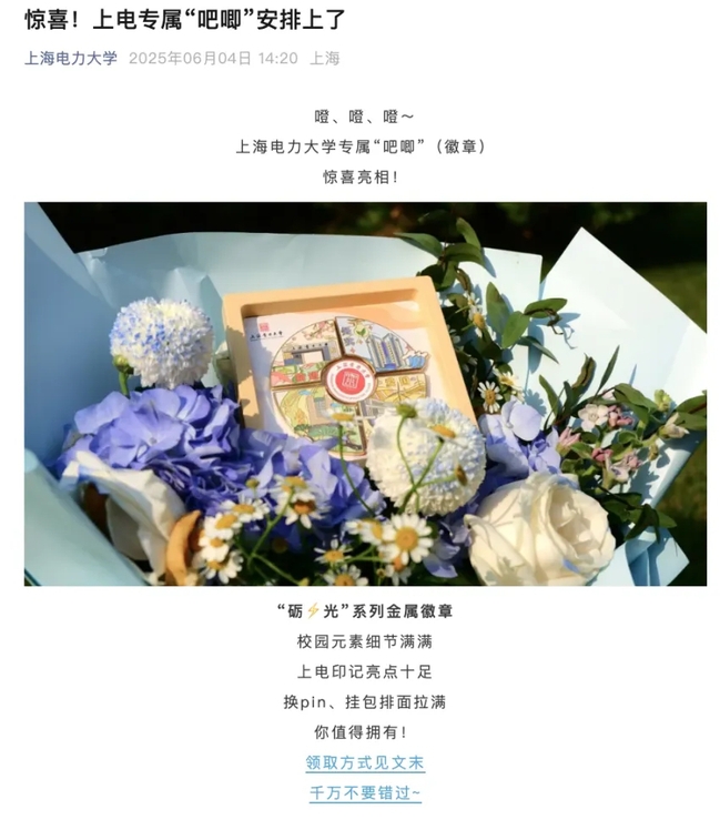 “互動感”也是本月高回報率文章的一大風景線。其中,“上海交通大學”的《考驗難度五顆星!交大建筑里藏著26個字母?》趣味揭秘校園建筑里的小秘密,以樓宇勾勒字母密碼,點燃網友探索欲。“上海電力大學”驚喜推出專屬“吧唧”(徽章)、排面拉滿,邀請讀者分享故事,在校園日常點滴中升華感恩和情誼(《驚喜!上電專屬“吧唧”安排上了》)。