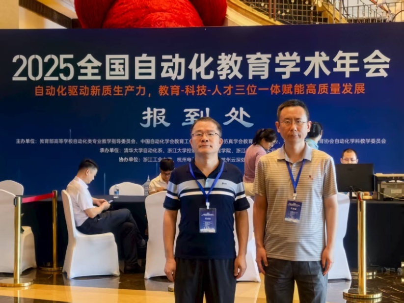 2025年全國自動化教育學術年會于7月20日-24日在浙江省杭州市召開。該年會由教育部高等學校自動化類專業教學指導委員會、中國自動化學會教育工作委員會等單位主辦,每兩年舉行一次,此次年會由清華大學自動化系、浙江大學控制科學與工程學院、浙江天煌科技實業有限公司承辦。來自全國各高校的一百多位自動化專業負責人和教師代表參加了此次盛會。我校自動化專業負責人薛陽和教師代表康英偉受邀參加此次會議。