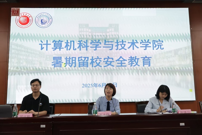 暑假以來,為做好留校學生教育管理與服務工作,計算機學院召開2025年暑假留校學生安全教育大會,多次深入園區走訪檢查學院留校學生在校學習與安全情況。