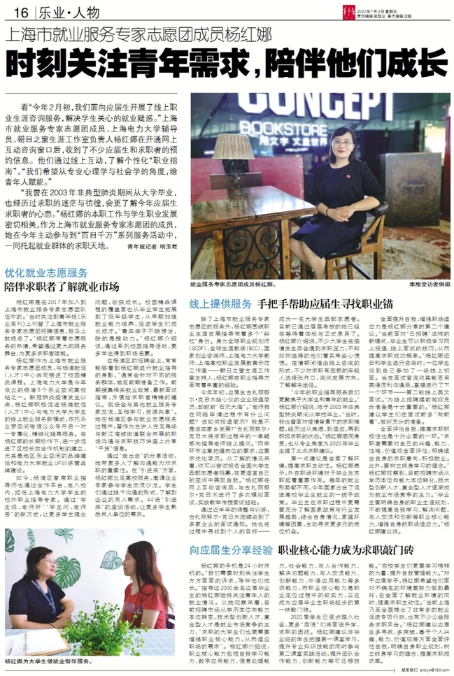 楊紅娜,上海電力大學(xué)馬克思主義學(xué)院副教授,校職業(yè)發(fā)展教研室主任,校學(xué)習(xí)貫徹黨的二十大精神教師宣講團(tuán)成員。從事思想政治教育工作二十余年,獲得上海市育才獎(jiǎng)、上海高校輔導(dǎo)員年度人物提名獎(jiǎng)、上海電力大學(xué)優(yōu)秀教師等20余項(xiàng)榮譽(yù)。主持市級(jí)課題6項(xiàng),發(fā)表論文十余篇,編著1本。創(chuàng)辦朝日之窗生涯工作室,為學(xué)生插上成長(zhǎng)成才的翅膀,工作室三次獲批上海高校職業(yè)生涯發(fā)展教育示范工作室。她被聘為上海市就業(yè)服務(wù)專家志愿團(tuán)專家。她的事跡被光明日?qǐng)?bào)、上海電視臺(tái)、解放日?qǐng)?bào)等20余家媒體報(bào)道。