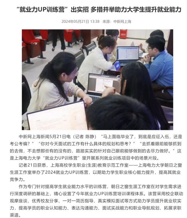 工作室理論教育與實(shí)踐養(yǎng)成相結(jié)合,在提升育人效力方面做出了許多創(chuàng)新實(shí)踐,創(chuàng)建了品牌活動(dòng)“就業(yè)力UP訓(xùn)練營(yíng)”,面向全國(guó)組織開展了“整合資源提升大學(xué)生職業(yè)軟實(shí)力”“高校生涯教育本土化的實(shí)踐與探索”等5場(chǎng)研習(xí)沙龍,與多家高校開展雙向交流,成果共享,聯(lián)合區(qū)、街道開展生涯指導(dǎo),受益學(xué)生超萬名,受到光明日?qǐng)?bào)、解放日?qǐng)?bào)、青年報(bào)等20余家媒體報(bào)道。