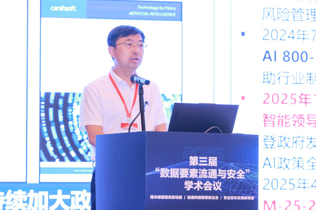 中國電子技術標準化研究院副院長范科峰做《人工智能安全治理框架及標準化工作思考》專題報告,人工智能安全治理需遵循發展與安全并重、風險可控、多方協同原則,頂層設計強化標準引領,技術層以魯棒性增強、隱私計算等技術應對風險,監管層完善全生命周期管理。
