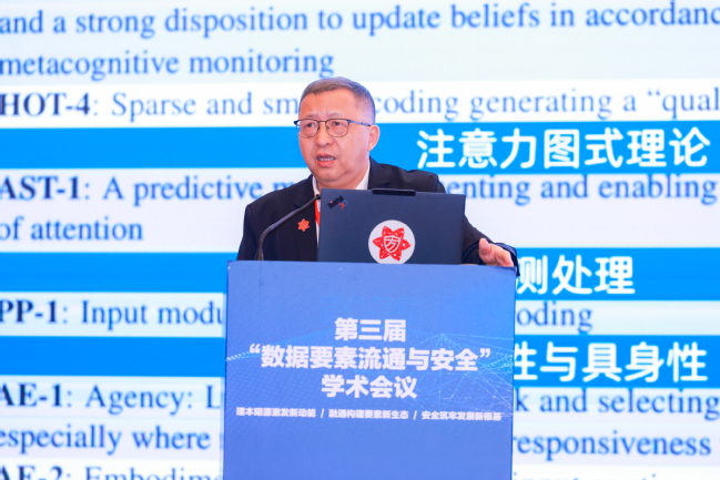 華東師范大學教授周傲英在致辭中指出“數據是新的動力”,亟需重新認識其核心價值,通過提升數據認知,樹立正確的數據觀,并強調“數據+數學”構成數字文明中信任機制的基本特征。