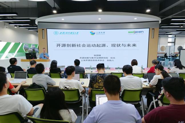 9月12日,計算機科學與技術(shù)學院博達講壇邀請上海開源信息技術(shù)協(xié)會秘書長、上海對外經(jīng)貿(mào)大學開源創(chuàng)新與數(shù)字治理研究院院長張國鋒,作《開源創(chuàng)新社會運動歷史、現(xiàn)狀與未來》主題講座。上海道客網(wǎng)絡科技有限公司首席運營官張紅兵,技術(shù)總監(jiān)李越,技術(shù)專家石勇軍、趙燕寧,人力資源總監(jiān)張倩倩應邀出席。學院常務副院長張傳林、黨委副書記齊永曉、教學秘書徐曼、計算機系主任葉文珺、《云原生&開源技術(shù)夏令營》課程負責人薛梅、團委書記盧珍參加本次講壇。