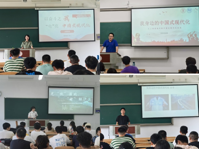 在“我身邊的中國式現代化”分享環節,學生們結合自身觀察與實踐經歷,從鄉村振興、科技發展、生態保護等多個視角,講述身邊的“中國式現代化故事”。暑期社會實踐學生代表分享光“扶”滇北,“電”聯滬滇——光伏提灌與農光互補賦能對口幫扶實踐調研情況。通過分享實踐調研的成果和經驗,引導學生關注社會熱點問題,積極參與社會實踐,將理論知識與實際應用相結合,增強社會責任感和實踐能力。通過“身邊事”解讀“大時代”,同學們更加清晰地認識到中國式現代化的豐富內涵與實踐路徑,也明確了個人成長與國家發展的緊密聯系,進一步堅定了把個人理想融入國家大局的信念。