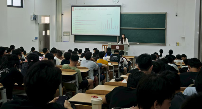 學(xué)院立足各年級(jí)學(xué)情特點(diǎn),聚焦問(wèn)題導(dǎo)向與目標(biāo)引領(lǐng)開(kāi)展學(xué)業(yè)指導(dǎo),幫助學(xué)生查漏補(bǔ)缺、規(guī)劃方向,為“挺膺擔(dān)當(dāng)”筑牢知識(shí)基礎(chǔ)。輔導(dǎo)員們以數(shù)據(jù)圖表為支撐,系統(tǒng)分析當(dāng)前學(xué)生存在的學(xué)業(yè)短板,引導(dǎo)學(xué)生立足新學(xué)期、打好新基礎(chǔ)、實(shí)現(xiàn)新目標(biāo)。同時(shí)強(qiáng)調(diào)考場(chǎng)紀(jì)律,告誡學(xué)生“杜絕作弊,莫因小失大”。此外,大一年級(jí)聚焦適應(yīng)性教育,引導(dǎo)新生盡快適應(yīng)大學(xué)學(xué)習(xí)節(jié)奏,養(yǎng)成自主學(xué)習(xí)習(xí)慣,合理規(guī)劃課余時(shí)間;大二年級(jí)結(jié)合國(guó)家獎(jiǎng)學(xué)金、上海市獎(jiǎng)學(xué)金、國(guó)家勵(lì)志獎(jiǎng)學(xué)金評(píng)選節(jié)點(diǎn),系統(tǒng)介紹大學(xué)四年資助政策,引導(dǎo)學(xué)生“珍惜資助機(jī)會(huì),以感恩之心回饋社會(huì)”,為學(xué)業(yè)無(wú)虞提供保障;大三年級(jí)則聚焦推免細(xì)則進(jìn)行解讀,明確推免核心條件,鼓勵(lì)有志深造的學(xué)生早布局、強(qiáng)能力;畢業(yè)班輔導(dǎo)員以學(xué)籍審核為重點(diǎn),強(qiáng)調(diào)學(xué)分修滿、績(jī)點(diǎn)達(dá)標(biāo)等關(guān)鍵指標(biāo)對(duì)順利畢業(yè)的重要性。