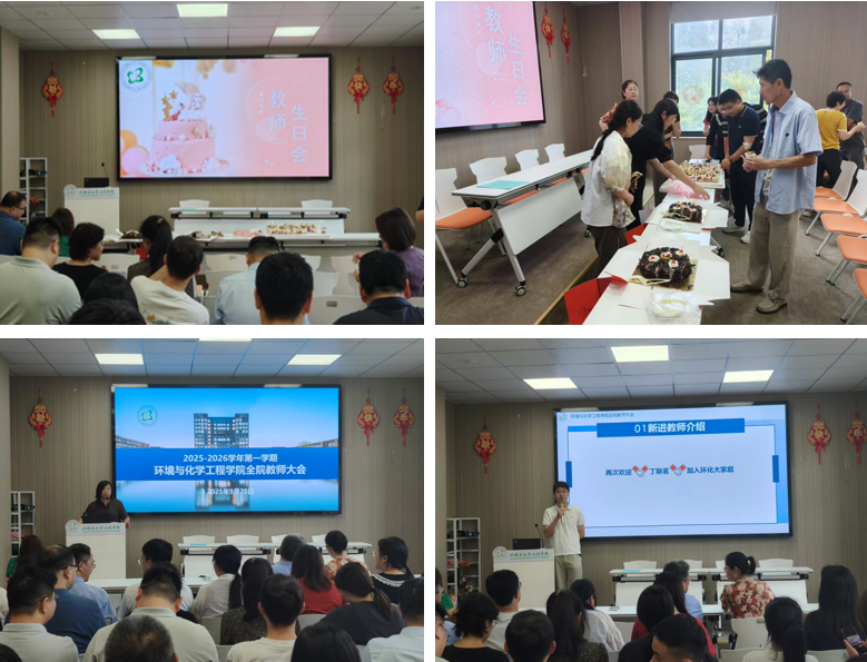 會議伊始,學院黨委聯合學院分工會,為下半年過生日的教師們精心策劃了一場溫馨的集體生日會。現場氛圍輕松愉悅,老師們暢聊教學心得、分享生活感悟,為新學期凝聚起溫暖有力的團隊向心力。新進教師丁斯茗發表入職感言,他結合自身專業背景,詳細介紹了個人職業規劃,字里行間流露出對教育事業的熱愛與對未來在環化學院工作的期待。