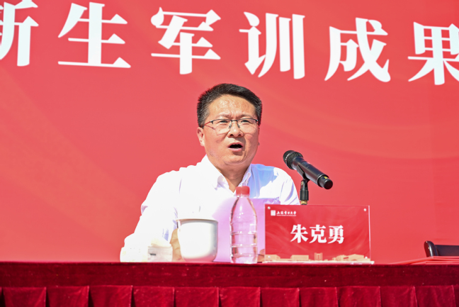 朱克勇宣讀《關(guān)于表彰2025級(jí)學(xué)生軍訓(xùn)工作先進(jìn)集體及先進(jìn)個(gè)人的決定》,激勵(lì)全體新生以榜樣為鏡,勇毅前行。