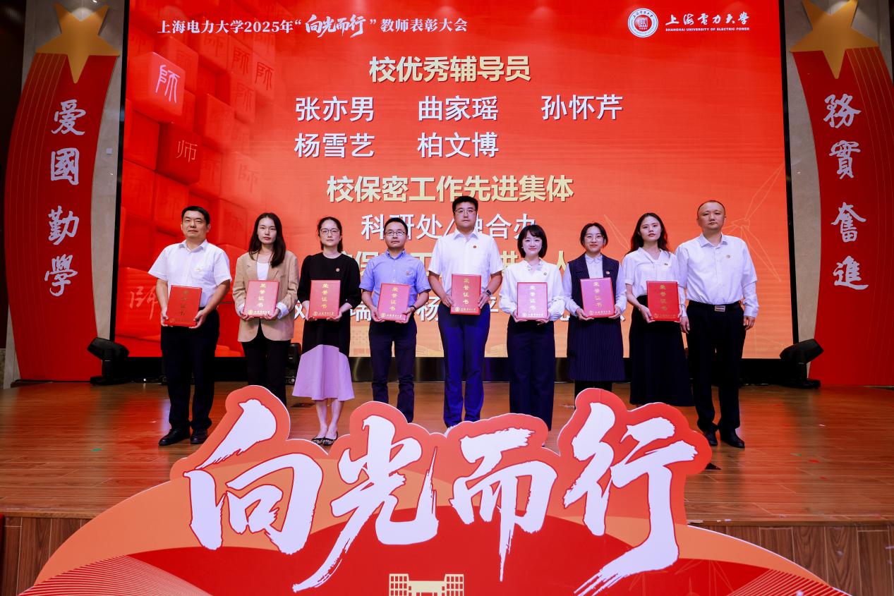 為深入學習貫徹習近平總書記關于教師隊伍建設的重要講話精神,推進實施教育家精神鑄魂強師行動,9月28日下午,上海電力大學2025年“向光而行”教師表彰大會在臨港校區學術樓117報告廳舉行,2024-2025學年在教學、科研、管理等各項工作中取得優異成績的教師集體和個人受到表彰。校黨委書記宋來,校黨委副書記、校長顧春華,黨委副書記、紀委書記張艷林,黨委副書記仰頤,黨委副書記、副校長朱克勇,副校長楊寧等出席本次大會。