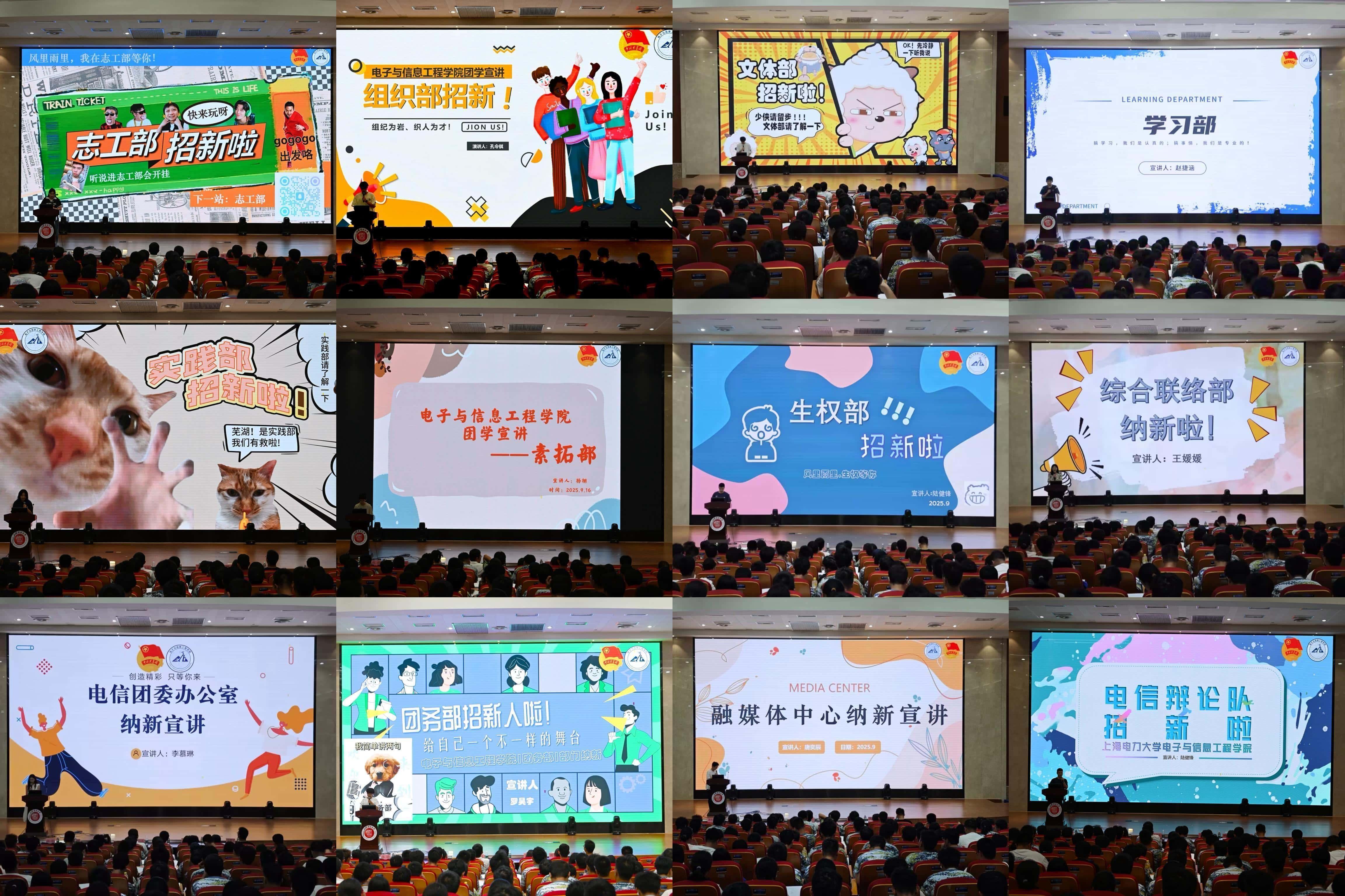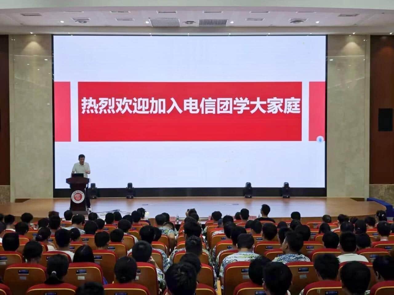 為使大一新生深入了解學(xué)院學(xué)生工作和團學(xué)各部門的職責(zé)定位與核心理念,近日,電信學(xué)院2025級新生入學(xué)教育之“走進團學(xué)”暨納新宣講會在學(xué)術(shù)樓117報告廳舉行。電信學(xué)院團委書記李天成、團委掛職副書記李驍、團學(xué)書記班子主席團、團委學(xué)生會部門負責(zé)人及300余名新生參會。