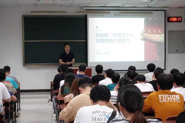魯傳龍以“軟技能:職場與個(gè)人發(fā)展的核心競爭力”為題展開分享。他強(qiáng)調(diào),溝通、協(xié)作、領(lǐng)導(dǎo)力等軟技能在職業(yè)晉升、團(tuán)隊(duì)合作與問題解決中具有不可替代的作用。他指出,軟技能并非與生俱來,而是可以通過持續(xù)練習(xí)與系統(tǒng)培養(yǎng)不斷提升。從設(shè)定內(nèi)在目標(biāo)、鍛煉專注力,到堅(jiān)持閱讀與接受挑戰(zhàn)以增強(qiáng)學(xué)習(xí)力與韌性,再到在社交協(xié)作中修煉情商與溝通能力,每一步都是對(duì)個(gè)人成長的有效投資。他希望同學(xué)們認(rèn)識(shí)到,在技術(shù)快速迭代與工作方式持續(xù)演變的時(shí)代背景下,軟實(shí)力已成為應(yīng)對(duì)不確定性、實(shí)現(xiàn)可持續(xù)發(fā)展的關(guān)鍵競爭力,鼓勵(lì)大家盡早將這一影響職業(yè)高度與生活品質(zhì)的重要因素納入日常學(xué)習(xí)與生活中。