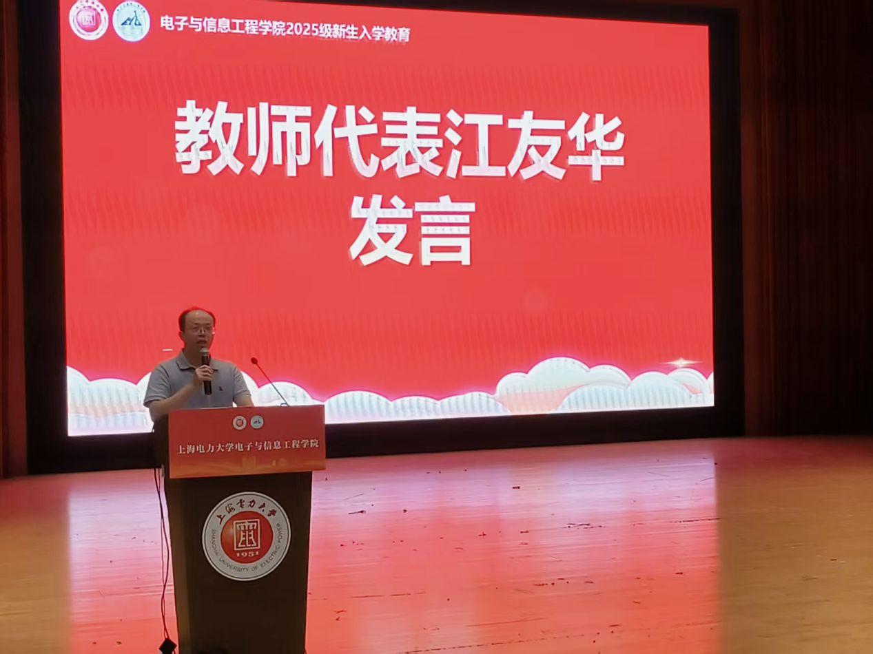 教師代表江友華教授結(jié)合自身經(jīng)歷與學(xué)科知識,為全體新生講授了一堂生動的思政課。他強(qiáng)調(diào),大學(xué)是一片比高中更為廣闊的天地,不僅要掌握專業(yè)知識,更要注重將書本知識轉(zhuǎn)化為解決實(shí)際問題的能力和未來的職業(yè)競爭力。江友華勉勵同學(xué)們積極參與課程實(shí)踐,在動手操作中深化理論理解;同時,要主動投身于各類電子類學(xué)科競賽,以賽促學(xué)、以賽促練,全面提升自身的創(chuàng)新實(shí)踐與綜合素養(yǎng),為成長為卓越的工程科技人才奠定堅實(shí)基礎(chǔ)。
