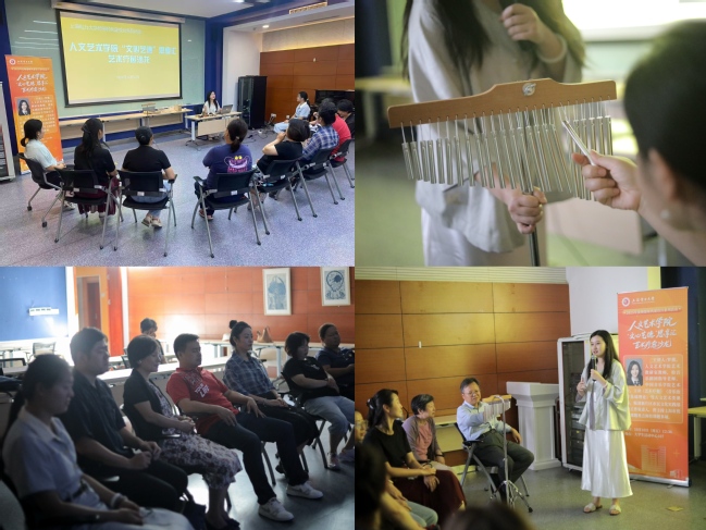 藝術療愈沙龍則由羅黛老師精心設計,通過低頻樂器與自然聲音的沉浸式體驗,為教師們打造了一場“心靈SPA”:海浪音的輕柔波動、雨棍的細密私語、頌缽的悠遠共鳴……教師們閉目聆聽,在自然與藝術的雙重療愈中釋放壓力。老師們分享道:“當樂器的聲音與自然聲交織時,仿佛置身森林深處,所有的疲憊都隨著聲波消散了。”