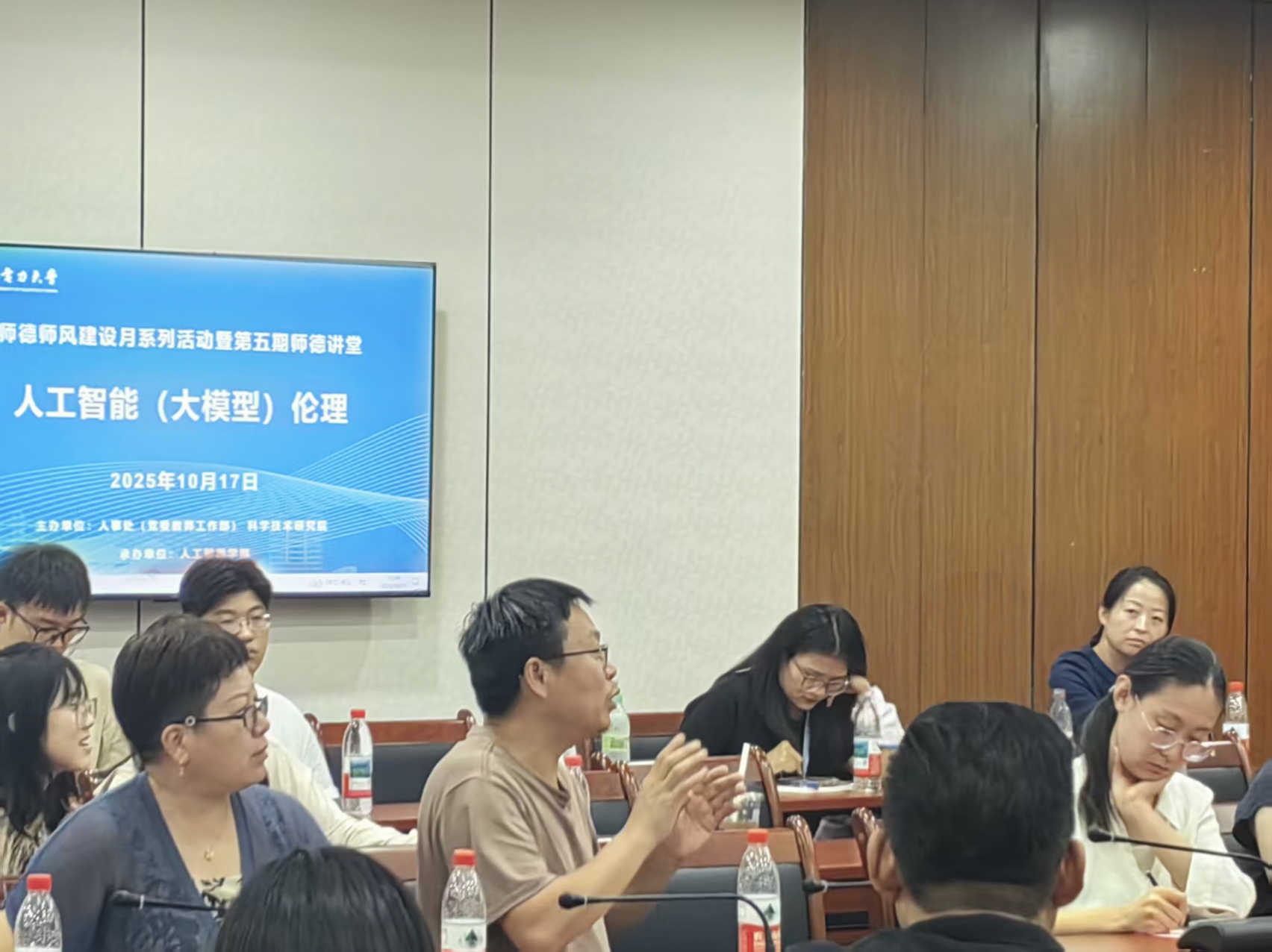 本次講座是學校師德師風建設月系列活動之一,講座增進了教師對人工智能倫理的理解,引發了在場教師的共鳴,回應了教師在人工智能時代的專業發展與師德涵養需求,為把握人工智能技術應用尺度、涵養高尚師德提供了指引和思考。