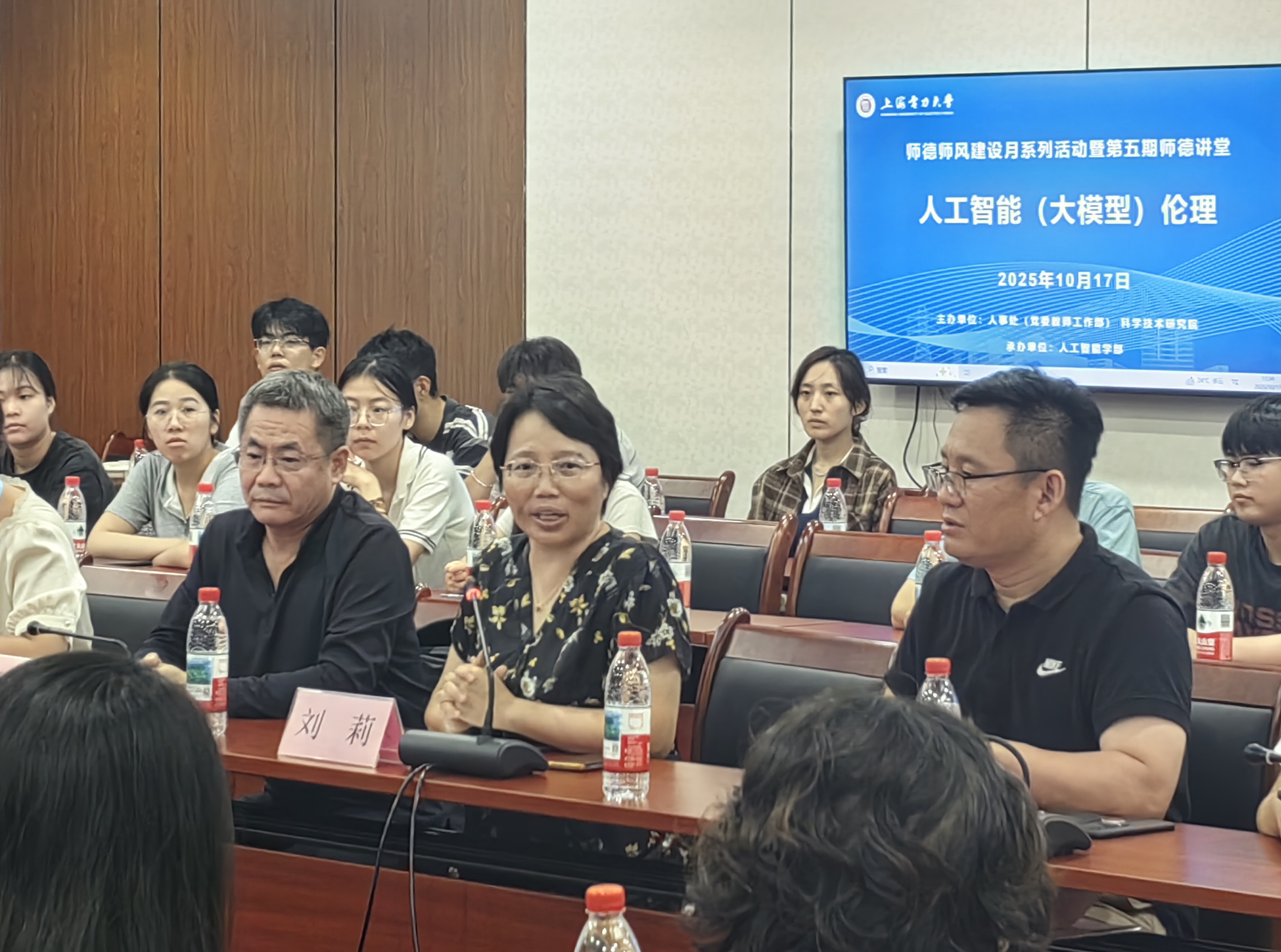 10月17日下午,第五期師德講堂在臨港校區學術樓301會議室舉辦。本次活動由黨委教師工作部、科學技術研究院聯合主辦,人工智能學部承辦,特邀上海市科研誠信宣講團成員、上海立信會計金融學院計算機與人工智能學院院長胡乃靜教授主講,講座以“人工智能(大模型)倫理”為主題。人工智能學部黨委書記劉莉、黨委副書記齊永曉以及教師代表參加。