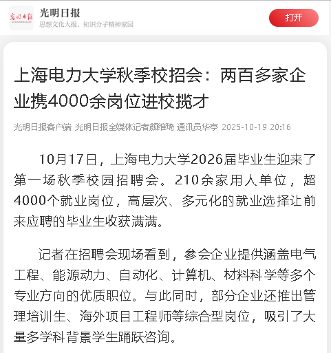 《光明日?qǐng)?bào)》上海電力大學(xué)秋季校招會(huì):兩百多家企業(yè)攜4000余崗位進(jìn)校攬才