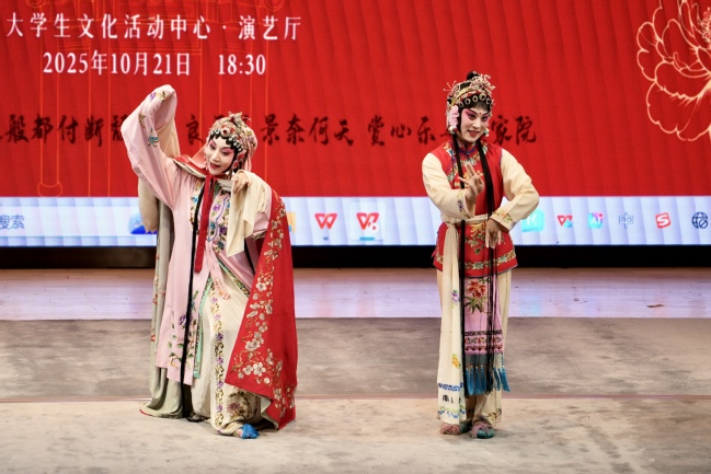 10月21日晚,臨港校區大學生文化活動中心演藝廳內,婉轉昆腔漫過座席,水袖剪影漸次浮現,由校黨委宣傳部、學生工作部(學生處)聯合主辦的“高雅藝術進校園”——昆劇《牡丹亭》專場在這里精彩上演。上海昆劇團的青年演員們以精湛的表演藝術,將中國古典戲曲的獨特魅力帶入校園,為師生奉上一場跨越時空的非遺盛宴。本次演出吸引了近500名師生觀看。