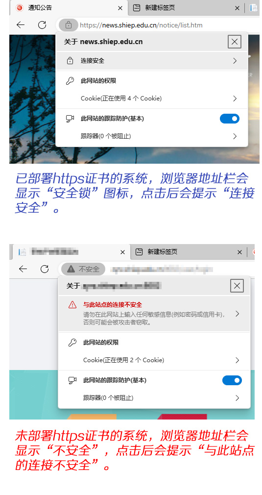 我校校園網HTTPS證書將于2025-11-20到期,目前新版證書已經簽發,請有需要使用的老師前往信息化與數據管理中心登記領用。領用時需提供:信息系統名稱、域名、IP地址、服務器類型(Apache/Nginx/Other)信息,建議向系統建設運維單位了解。已通過學校安全網關統一防護的系統,學校將統一更新證書,無須單獨領用。