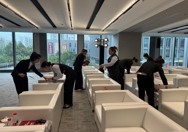 “請這邊簽到,您的座位在第一排嘉賓區(qū),會議資料已按議程順序整理完畢。”當日14:00,志愿者團隊提前90分鐘到崗,完成全流程彩排。簽到環(huán)節(jié),2名禮儀志愿者以中英雙語引導阿聯(lián)酋代表團及工商銀行、陸家嘴管理局等9家單位嘉賓入場,精準核對座席卡信息,確保“一人一卡一位”零誤差。